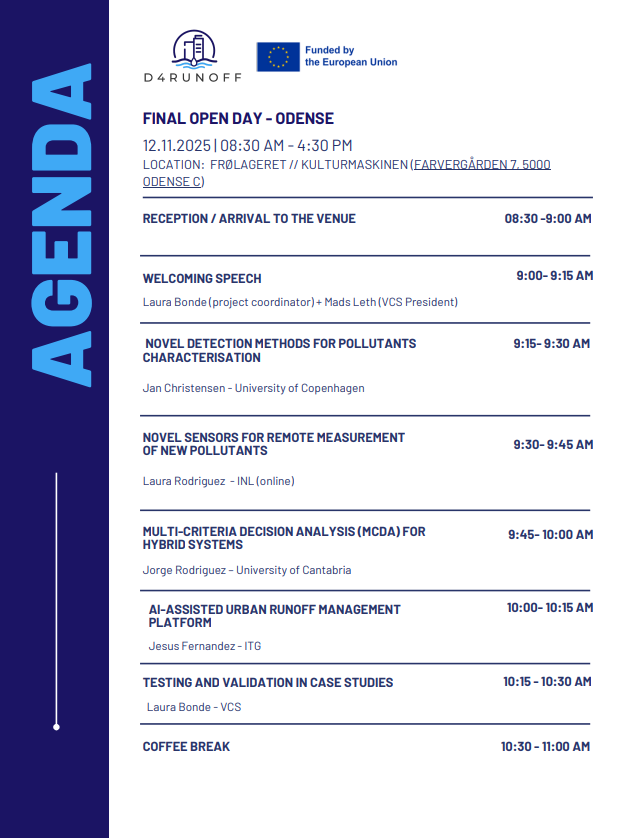 D4RUNOFF (Horizon funding) is formed by 13 leading universities, institutions and companies from 5 countries. The main objective of the project is to develop monitoring and assessment strategies for contaminants of emerging concern (CECs) removal from urban runoff.