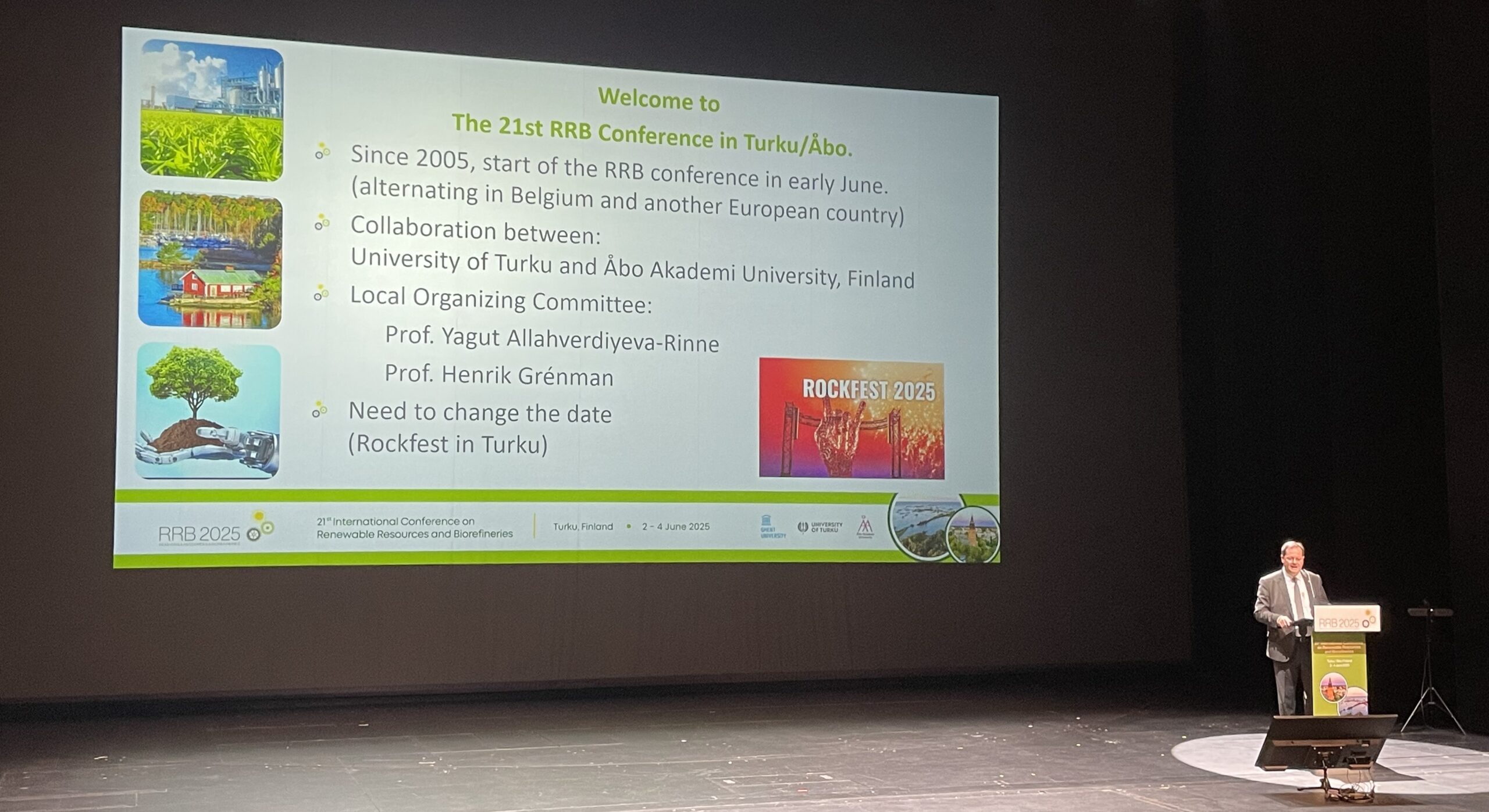 The 21st edition of the International Conference on Renewable Resources & Biorefineries (RRB) took place in Turku/Åbo, Finland from Monday 2 June until Wednesday 4 June 2025. It was organised by Åbo Akademi University, the Industrial chemistry and reaction engineering and the Department of Life Technologies, University of Turku.